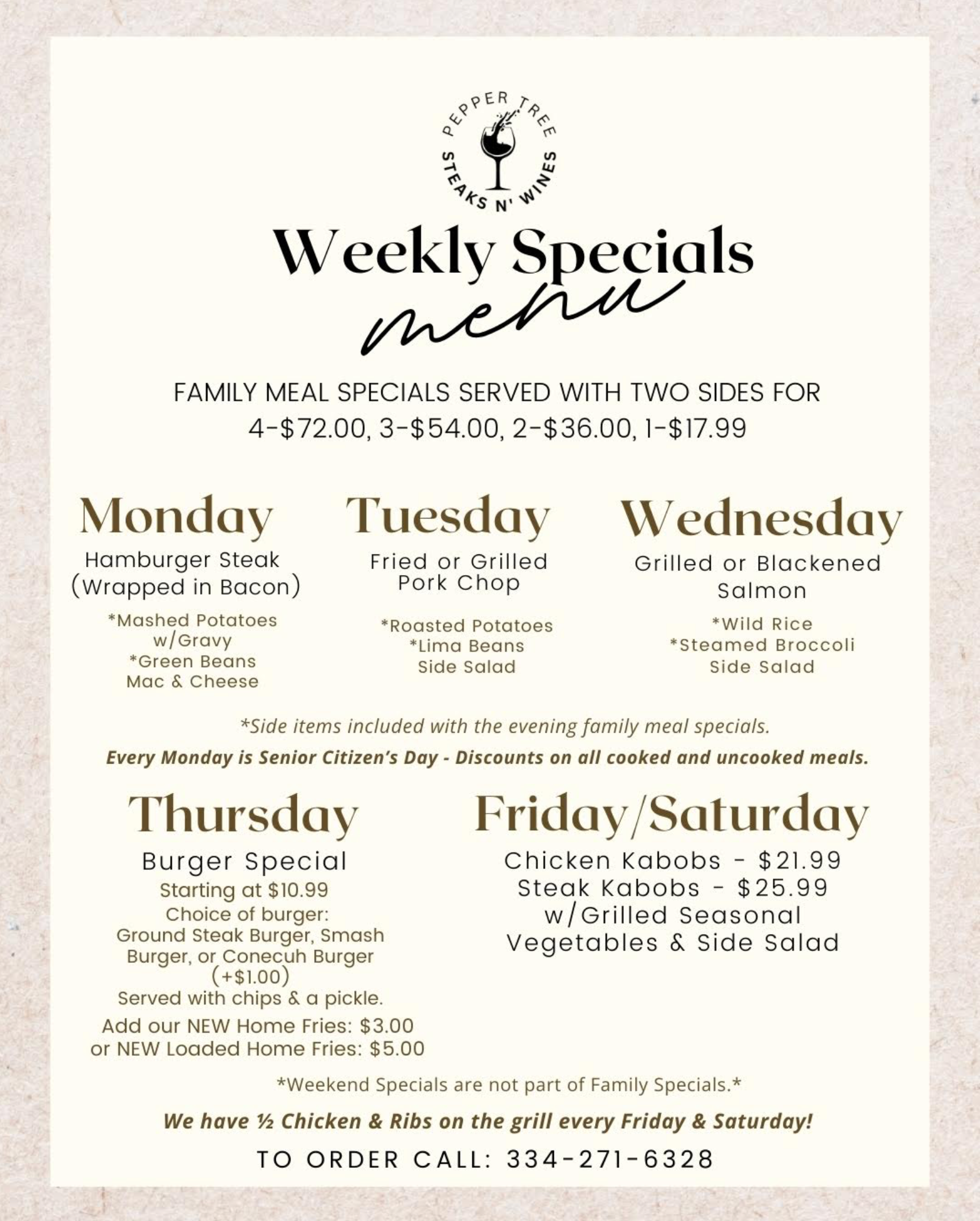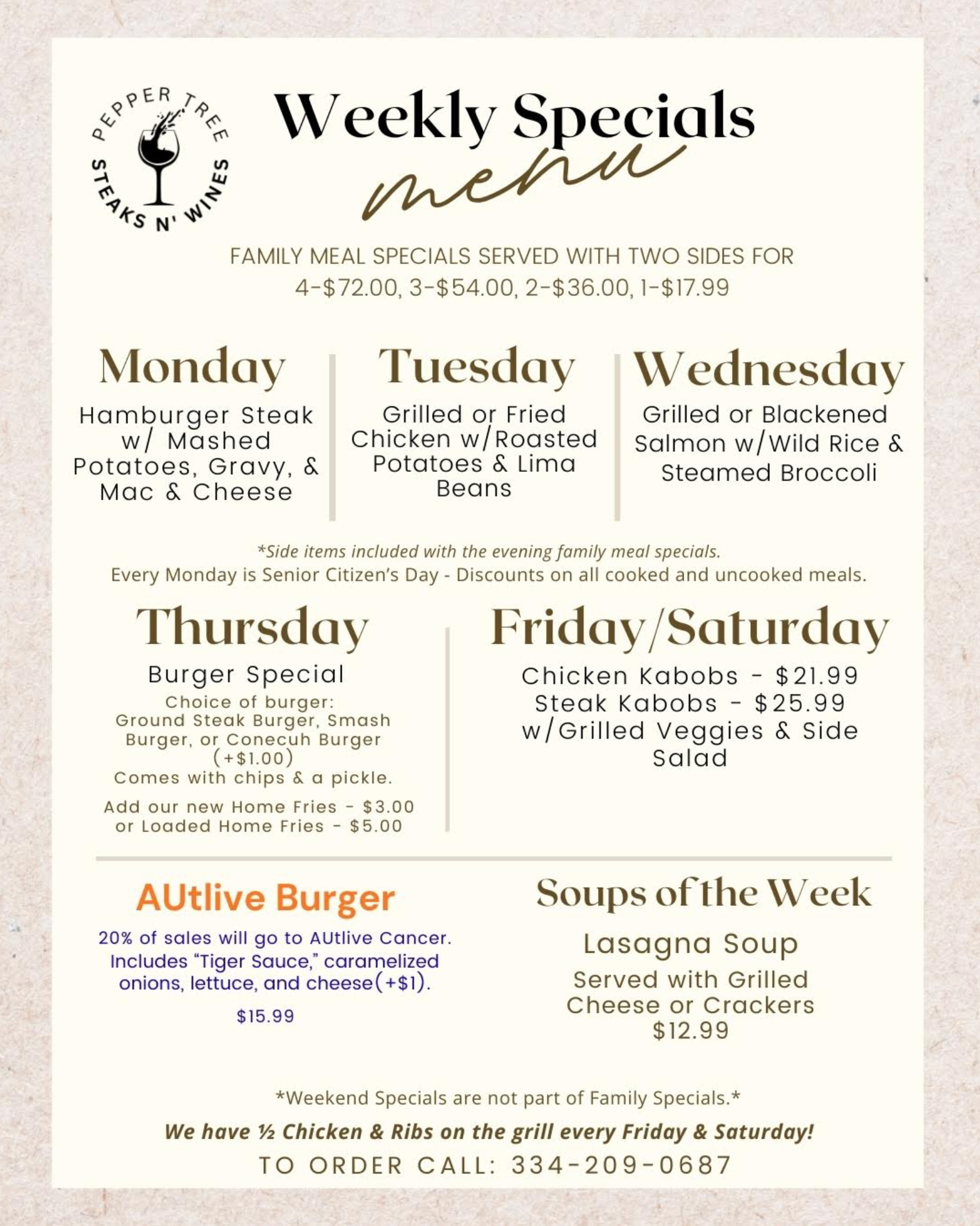 Pepper Tree Steaks N' Wines is known as the River Region and Auburn's premiere neighborhood specialty market, offering a variety of culinary experiences!
