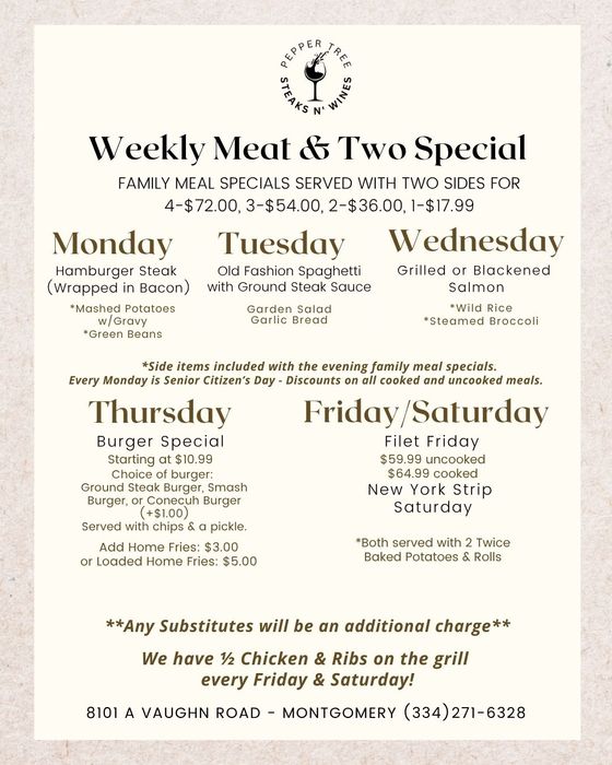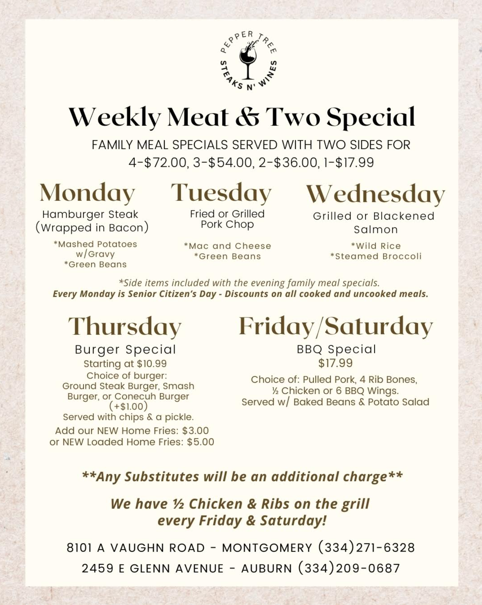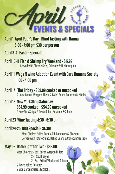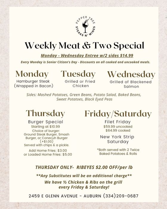 Pepper Tree Steaks N' Wines is known as the River Region and Auburn's premiere neighborhood specialty market, offering a variety of culinary experiences!